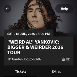 2 Tickets To Weird Al's "Bigger And Weirder" 2026 Tour July 18, 2026$350Stoneham, MA