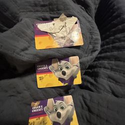 Chuck E. Cheese Gift Cards 3 of them with 20 $ on each taking offers can buy as many as you want 3 Max$15Worcester, MA