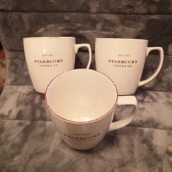 Three 2008 Starbucks Est# 1971 Coffee Company Mugs, White with Brown Trim & Lettering$45Saugus, MA