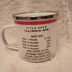MONOPOLY Illinois Ave ~ JUNK FOOD Porcelain Enamal Ware Coffee Mug Cup 2 Sided$14Saugus, MA