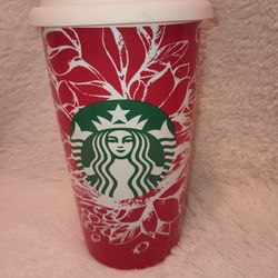 Starbucks Holiday Christmas Winter Red White Ceramic Travel Mug With Lid 2016$15Saugus, MA