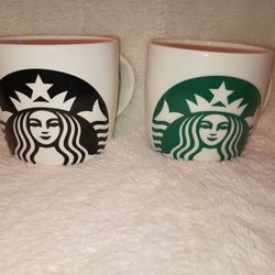 Two Starbucks Coffee Tea Cup Mug 2007 Green Mermaid Logo 8oz Lot of 2$15Saugus, MA