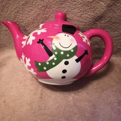 Vintage Hand Painted Red & White Snowman Porcelain Snowflake Christmas Holiday Teapot $65Saugus, MA