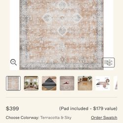 Shiraz Terracotta And Sky Rug And Pad Set From Tumble Living- Brand New In Box $350Chelmsford, MA