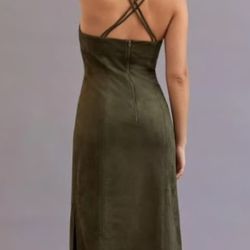 Anthropologie Sueded Slip Sleeveless Midi Dress Moss Green Size 14