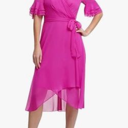 DKNY 2025 Women Red Stretch Cotton Knit Shift Dress With Side Tie Bow, Sz.M NWT$35Natick, MA
