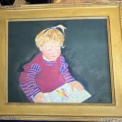 Tatum's First Book Oil Painting Framed on Canvas 20"x24" by Fredric M. Dustin$116Boston, MA
