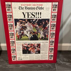 Red Sox 2004 Champions Newspaper Headline In Jig Saw Puzzle Form Framed Ex Cond $125Billerica, MA