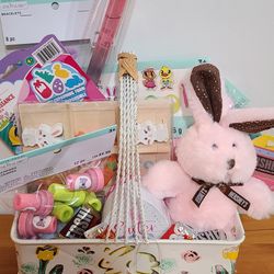 Pink Bunny Easter Kids Gift Basket Homemade Bracelets, Stickers, Stamps, New$15Billerica, MA
