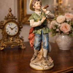 KPM Berlin Germany Antique 1890s Porcelain Boy With Horn Figurine, 11.5”$750Natick, MA