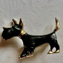 Vintage Tiny Black Enamel & Gold Tone Puppy With Green Eye Brooch Pin$79Lawrence, MA
