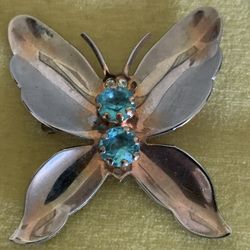 Vintage Silver Copper ToneBlue Butterfly With Rhinestones $160Methuen, MA