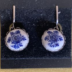Vintage Blue & White Flower Porcelain Screw Drop Earrings $60Methuen, MA