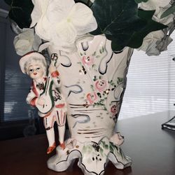 VINTAGE 1950’s JAPAN 8Inch x 6 Inch VASE HANDPAINTED in Pinks Green Black Gold $10Quincy, MA