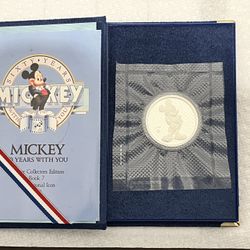 MICKEY 60 YEARS WITH YOU. 1988 MICKEY MOUSE 1oz SILVER PROOF COIN.$250Weymouth, MA