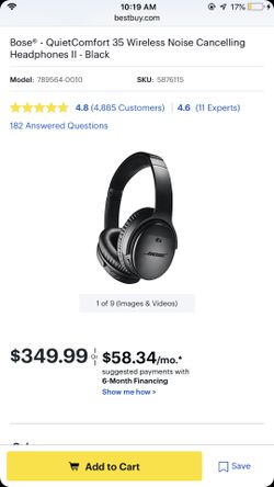 Bose QuietComfort 35 wireless noise cancelling headphone Bluetooth$300Boston, MA