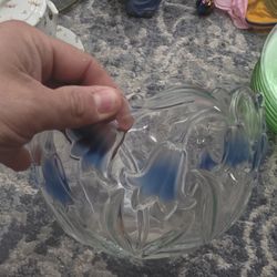 Vintage Glass Bowl With Blue Flowers $10Fitchburg, MA