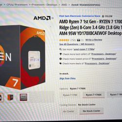 AMD Ryzen 7 1st Gen 1700x CPU$85Boston, MA