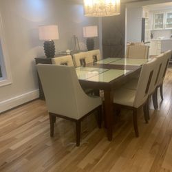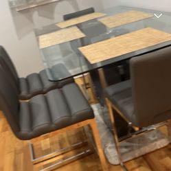 Glass Dining Table With Stain Steel Legs And 6 Leathers Chairs $450Winthrop, MA