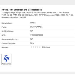 HP EliteBook 845 G11 Notebook (OPEN BOX)$1,700Revere, MA