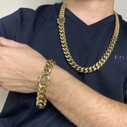 12MM Cuban Link Set 14K Gold Plated Doesn't Loses Color$200Lawrence, MA