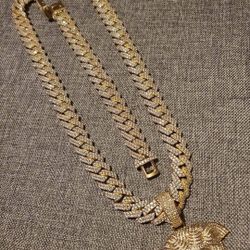 Chain And Bracelet 20MM Full Ice Out 14k Gold Plated Doesn't Loses Color $450Lawrence, MA