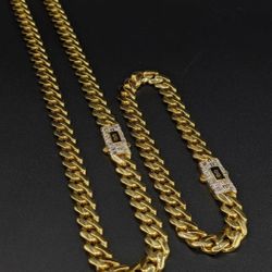 12MM Cuban Link Set 14K Gold Plated Doesn't Loses Color$190Lawrence, MA