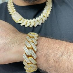 Chain And Bracelet Full Ice Out Cuban Prong 16MM Gold Plated 14k Doesn't Loses Color $350Boston, MA