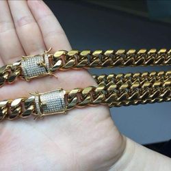 14MM Cuban Link Set 14k Gold Plated Doesn't Loses Color $200Leominster, MA