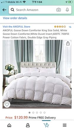 AIKOFUL Goose Down Comforter King Size Solid, White Goose Down Comforter,White Duvet Insert,600TC 700Fill Power Cotton Fabric, Double Edge Gray Piping$100Boston, MA
