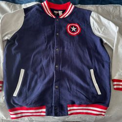 Marvel Blue Captain America Jacket Men Snap Letterman Varsity Adult Size 2XL$30Quincy, MA