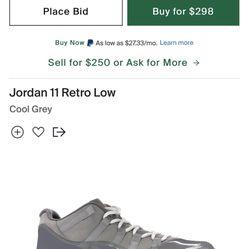 Jordan Retro 11 Cool Grey Low DS$280Boston, MA