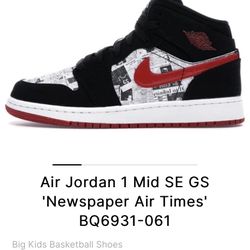 🔥 🔥 Kids JORDAN 1 MID Newspaper Air Times 🔥 🔥 ***VERY RARE***$60Boston, MA