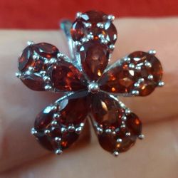 Garnet ring flower sterling silver size 6$99Chelsea, MA