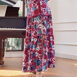 Women’s High Waist Graphic Print A Line Pleated Lettuce Trim Mermaid Hem Long Skirt *NEW*$22Weymouth, MA