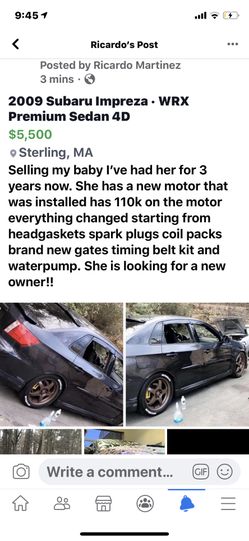 2009 Subaru wrx sedan$5,500110k milesLeominster, MA