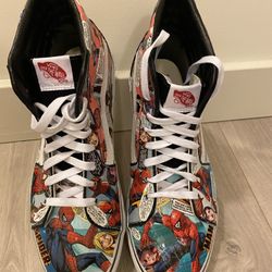 VANS High Top Man Shoes Customised With Decoupage Of Spider Man Comics Book Size 11$45Chelsea, MA