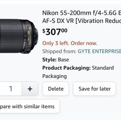 Nikon 55-200mm f/4-5.6G ED IF AF-S DX VR [Vibration Reduction] Nikkor Zoom Lens$150Baltimore, MD