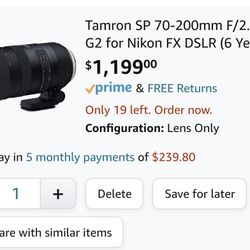 Tamron SP 70-200mm F/2.8 Di VC G2 for Nikon FX DSLR$850Baltimore, MD