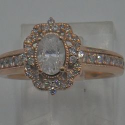 14kt rose gold ring size 7 4.5 grams w approximately 1.5 total diamonds SI2 G G COLOR . MAIN STONE 6.9MM X 4 MM THICK GURDLE . PRE OWNED. 870719-1.$2,499Baltimore, MD