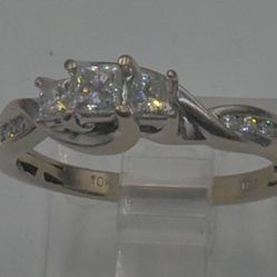 10KT WHITE GOLD RING 2.9 GRAMS SIZE 6.75 WITH DIAMONDS 3 MAIN DIAMONDS 3.3 X 2.9 X 2.5 & 8 ROUND SIDE ADIAMONDS APPROXIMATELLY .03 POINTS EACH. 884353$449Baltimore, MD