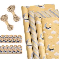Brandnew Gift Wrapping Paper Rolls with Tags, Jute String - 17 Inch X 10 Feet per Roll - Moon Design for Boys Girls Baby Shower Designs Packing 3 Pack$6Daniels, MD