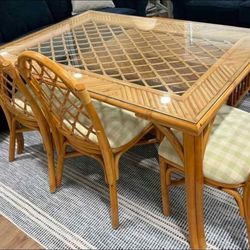 Vintage Rattan Dining Table with Glass Top & 6 Lattice Back Chairs – Coastal/Bamboo Style$800Kensington, MD