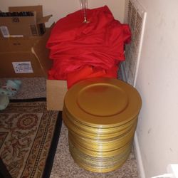 12 Table Round Cloth,6 Retangle,120 Chair Cloth Color Red, 70 Sustable Gold Plates,12 Champagne Decorated Cup$1Mcdonogh, MD