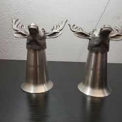 2 Jägermeister Bar Shot Glass -Stag Head - Pewter & Stainless Metal Preowned $25Baltimore, MD