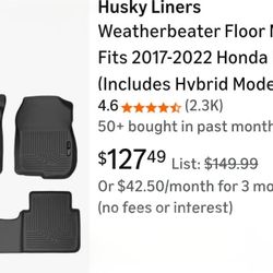 Husky Liners Weatherbeater Floor Mats | Fits 2017-2022 Honda CR-V (Includes Hybrid Model) | Front & 2nd Row, 3-pc Black -$80 $80Owings Mills, MD