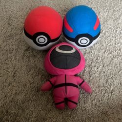 2 Red & Blue POKÉMON balls & circle masked squid game guard$20Baltimore, MD