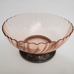 Vintage France Pink Rosaline Swirl Scalloped Edge Large Salad Bowl with Silver Metal Base$45Silver Spring, MD