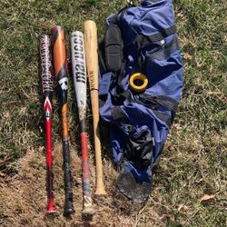 2 Baseball Bats, 2 Baseball Gloves And A Bag$10Laurel, MD