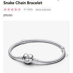 Pandora Moments Heart Clasp Snake Chain Bracelet 6.7”$39Washington, DC